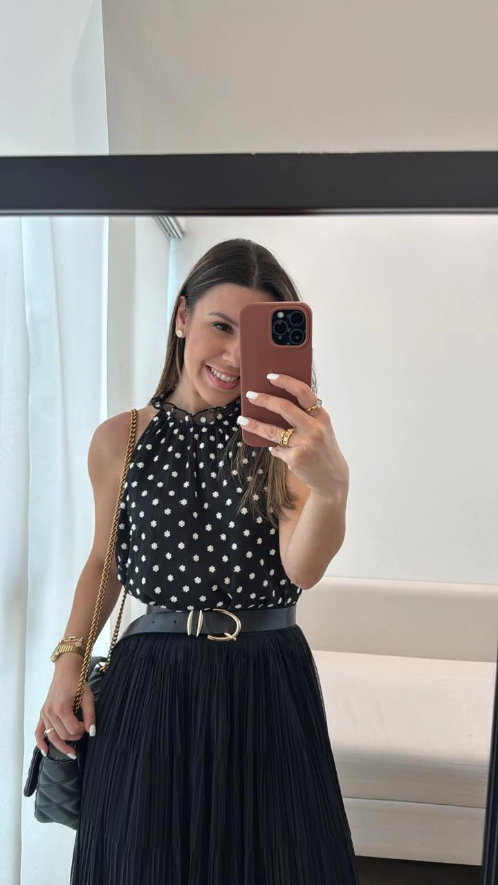 Na foto modelo está usando tamanho P , medidas da modelo: Altura 1.58 busto 89 , cintura 72 , quadril 101 cm .