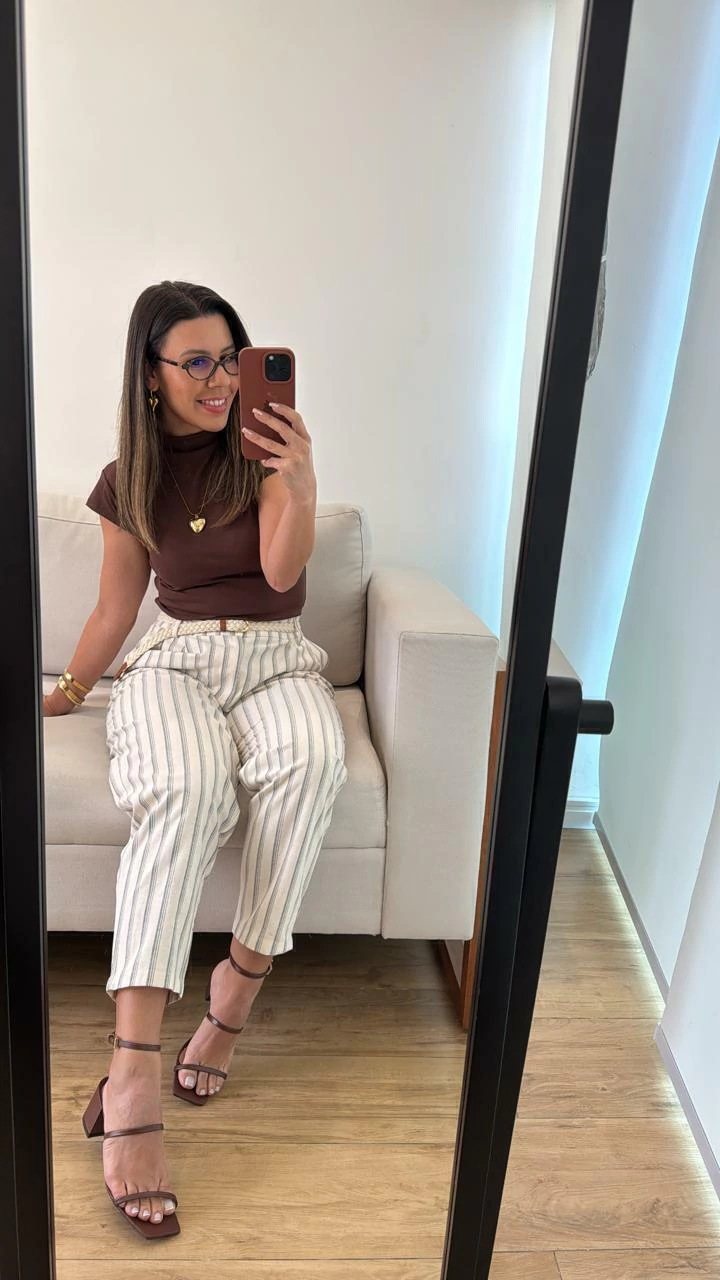 Na foto a modelo está usando tamanho P , medidas da modelo: Altura 1.58 busto 89 , cintura 72 , quadril 101 cm