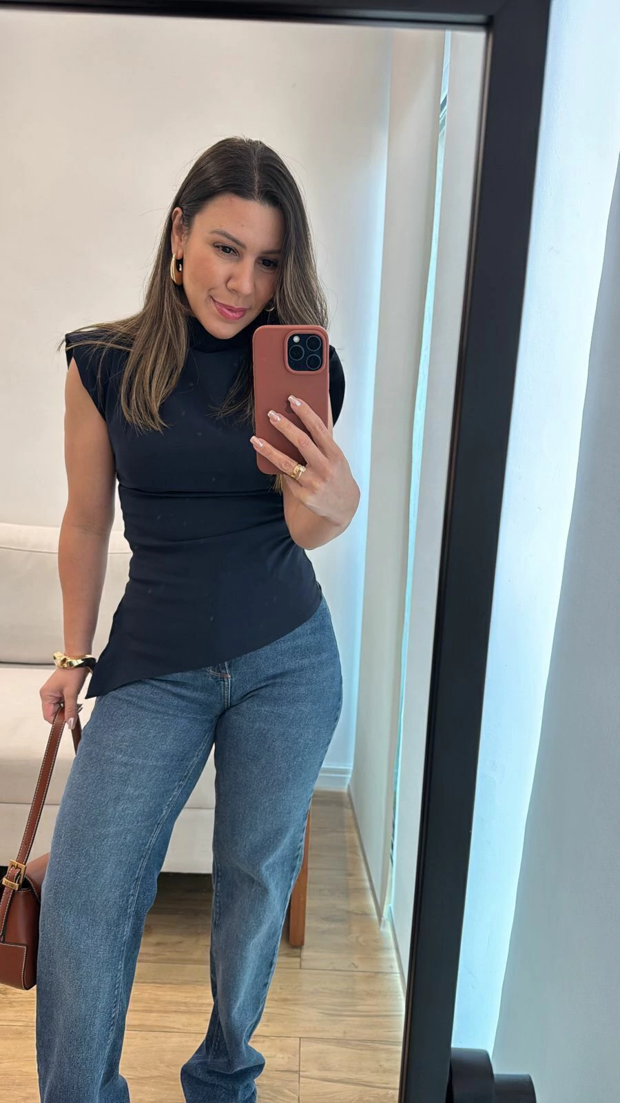 Na foto a modelo está usando tamanho 36 , medidas da modelo: Altura 1.58 busto 89 , cintura 72 , quadril 101 cm .