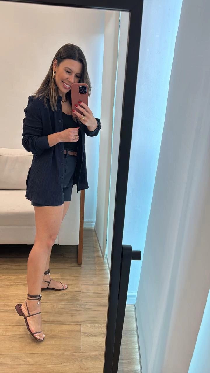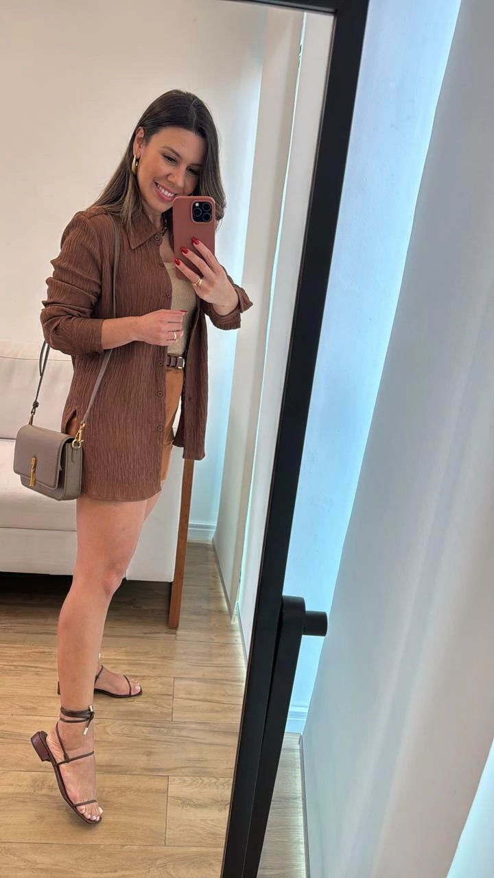 Na foto modelo está usando tamanho P , medidas da modelo: Altura 1.58 busto 89 , cintura 72 , quadril 101 cm .