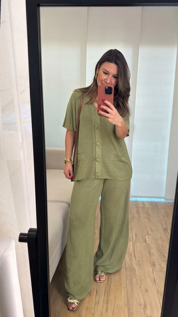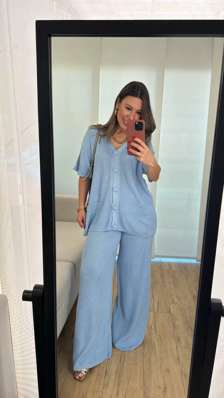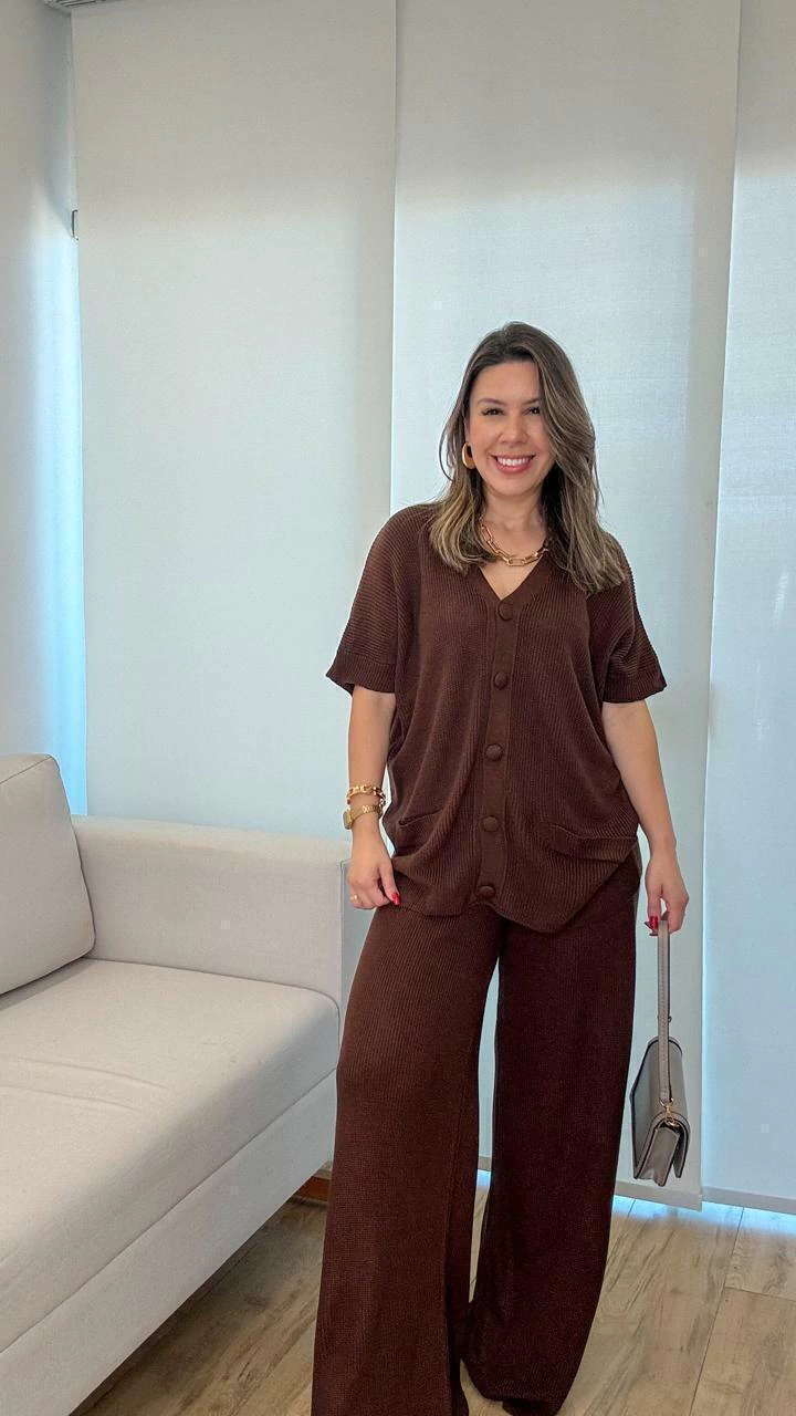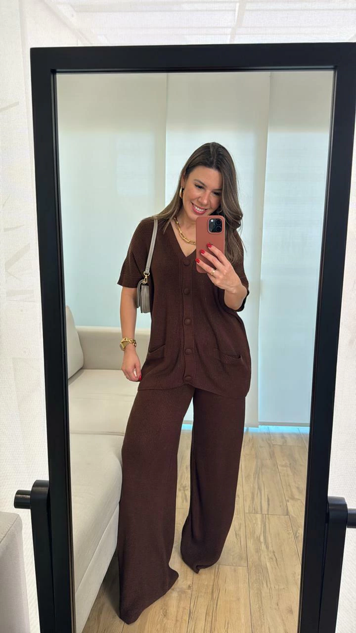 Obs: Conjunto em tricot modal, tamanho único (veste do 36 ao 42).