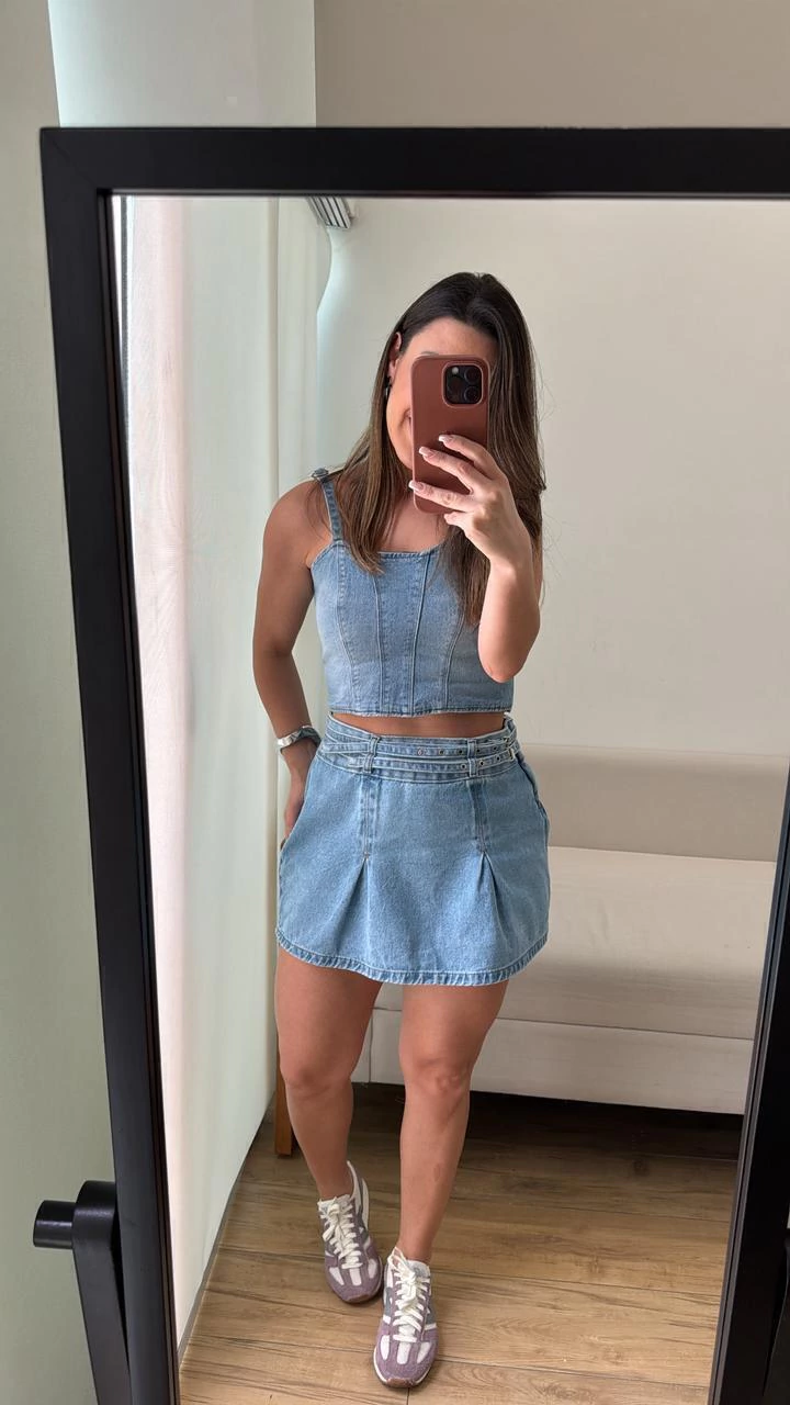 Na foto modelo está usando tamanho P , medidas da modelo: Altura 1.58 busto 89 , cintura 72 , quadril 101 cm .
