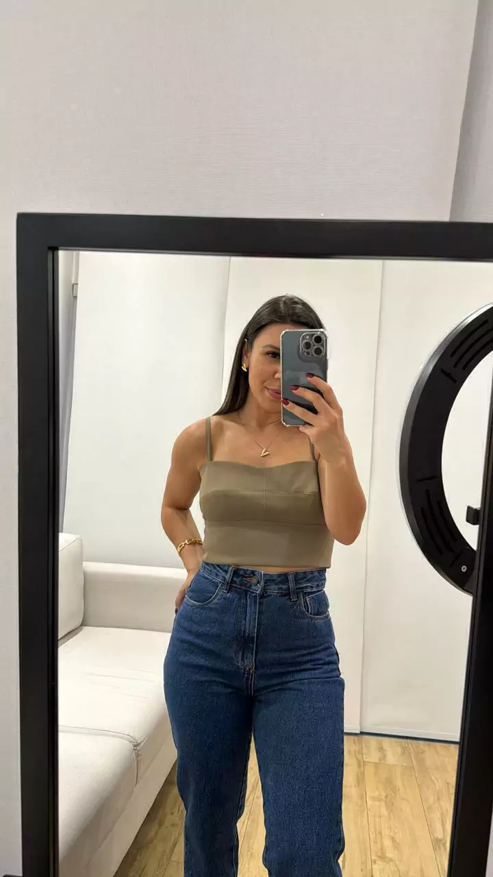 Na foto modelo está usando tamanho P , medidas da modelo: Altura 1.58 busto 89 , cintura 72 , quadril 101 cm .
